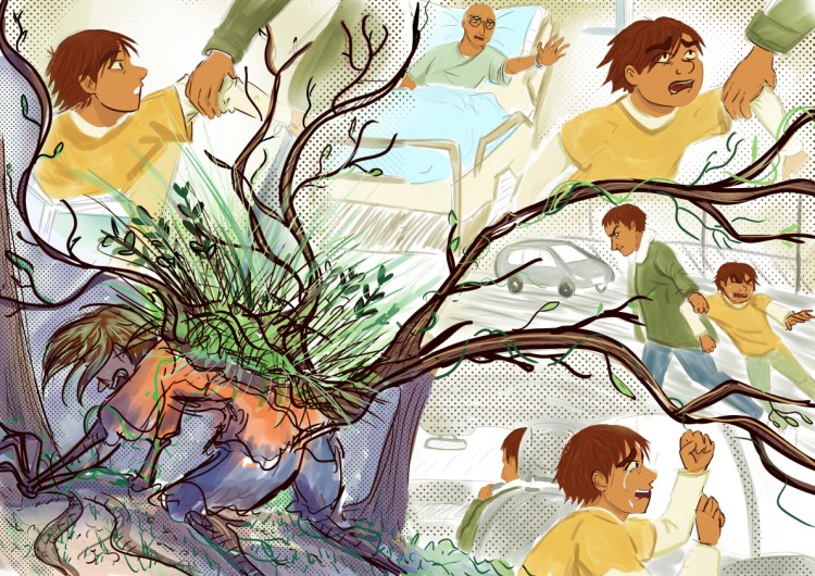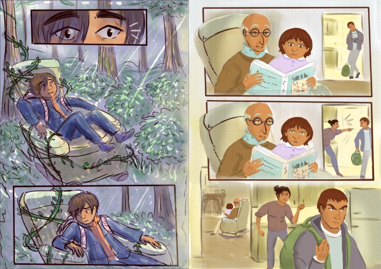 Her Roots is a 26 page comic about a child who ran away to the forest, and encounters objects from her past. As she wanders deeper into the forest, she slowly becomes a part of it.